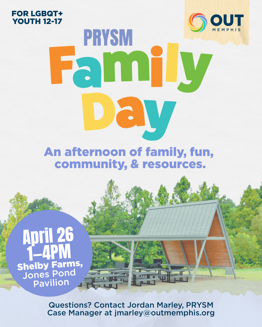 Back to All Events Family Day with PRYSM Sunday, April 26, 2026 12:00 PM 3:00 PM RSVP (map) Google Calendar ICS Family Day is an afternoon of family, fun, community, and resources. We will have food, a bounce house slide, games, facepainting, and a chance to meet our Caregiver Support Group therapist, Jerrika Henderson!RSVP to let us know you’re joining us! RSVP for Family Day! RSVP for Family Day! PRYSM activities are ONLY for 12-17 year oldsFor any questions, please reach out to Jordan Marley, our PRYSM Care Navigator, at jmarley@outmemphis.org